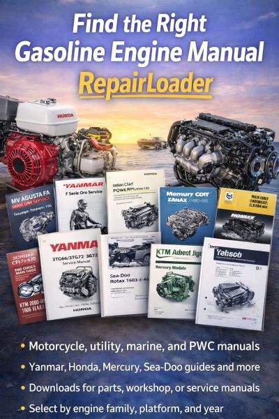 What users will find on RepairLoader’s gasoline-engine pages, then, is not just a large set of PDFs, but a better path to choosing them. The main gasoline engines category is where to start when you need orientation across different engine families and document types. More focused pages like the Yanmar 3TG66/3TG72 manual, Honda G65/G80 manual, Honda GC160 manual, or Kohler CV series manual are better when the engine code is already known. Platform-linked listings like the Sea-Doo Rotax 1503 4-TEC manual and Mercury 200 OptiMax Jet Drive manual are better when the machine context is part of the match. Broader references like the KTM multi-engine manual help when the buyer is still comparing several nearby possibilities.
