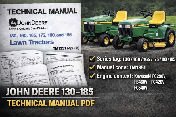 If you’re shopping for a John Deere lawn tractor technical manual, the best fit comes from matching the listing’s model set and engine/transmission identifiers to what’s on your tractor. This post is a coverage-preview helper so you can recognize the right TM1351-style PDF listing and avoid “close but not quite” look-alikes. It’s written for shoppers who want the right document on hand for reference—without turning the page into a how-to.