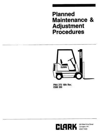 This is presented as a planned maintenance and adjustment procedures manual, not a general “all Clark forklifts” bundle and not a parts catalog. For a shopper, that distinction shapes expectations immediately. The visible page details point to a single PDF in English, marked printable, with a file size shown on the listing, and positioned as a focused document for a defined C500 range rather than a mixed archive of unrelated trucks.