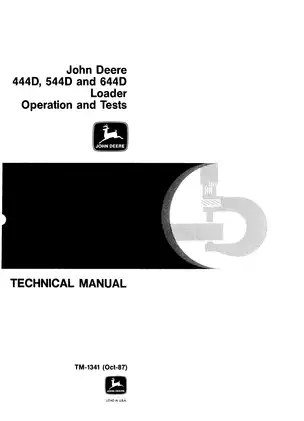 A short Deere title can look broader than it really is, which is why the cover matters here. The uploaded file behind the John Deere 444D, 544D, and 644D loader manual listing is clearly labeled Loader Operation and Tests Technical Manual, publication TM-1341, with an Oct-87 marking, and it is built around a three-model wheel loader group rather than one machine alone. If you are browsing the wider loader manual archive, this is the kind of entry that rewards a closer look at the publication line and model cluster before you buy.